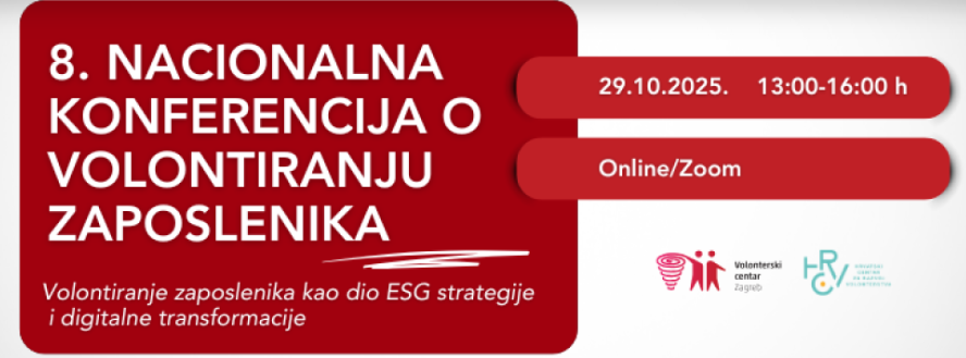 Volonterski centar Zagreb organizira 8. Nacionalnu konferenciju o volontiranju zaposlenika koja će se održati u srijedu, 29. listopada 2025., od 13 do 16 sati putem Zoom platforme.