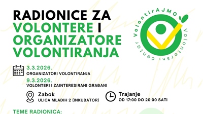 16.2.2026. //Prva radionica namijenjena je organizatorima volontiranja i održat će se 3. ožujka 2026. Druga radionica namijenjena je volonterima i ostalim zainteresiranim građanima i održat će se 9. ožujka 2026. Radionice su namijenjene organizatorima volont