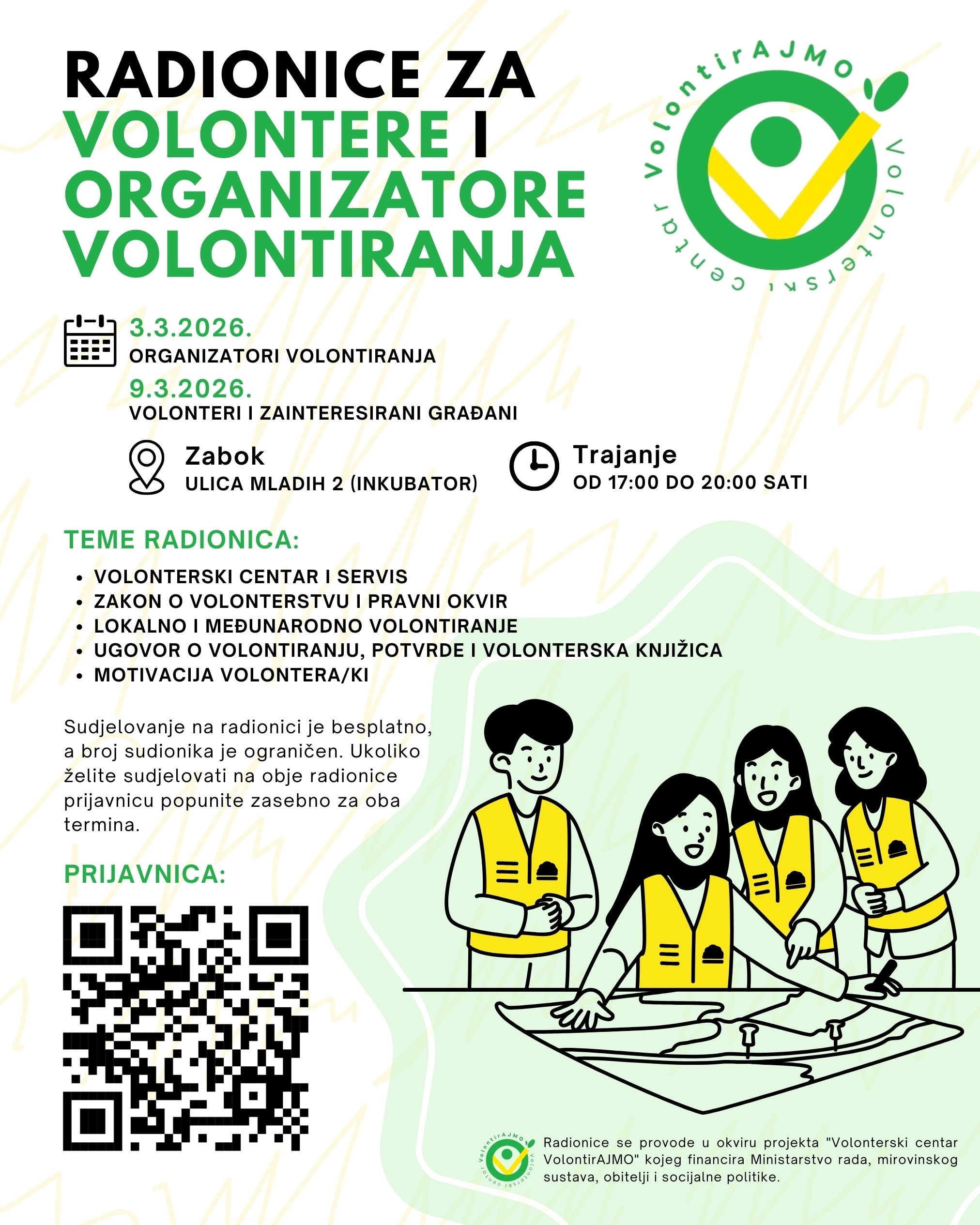 Prva radionica namijenjena je organizatorima volontiranja i održat će se 3. ožujka 2026.