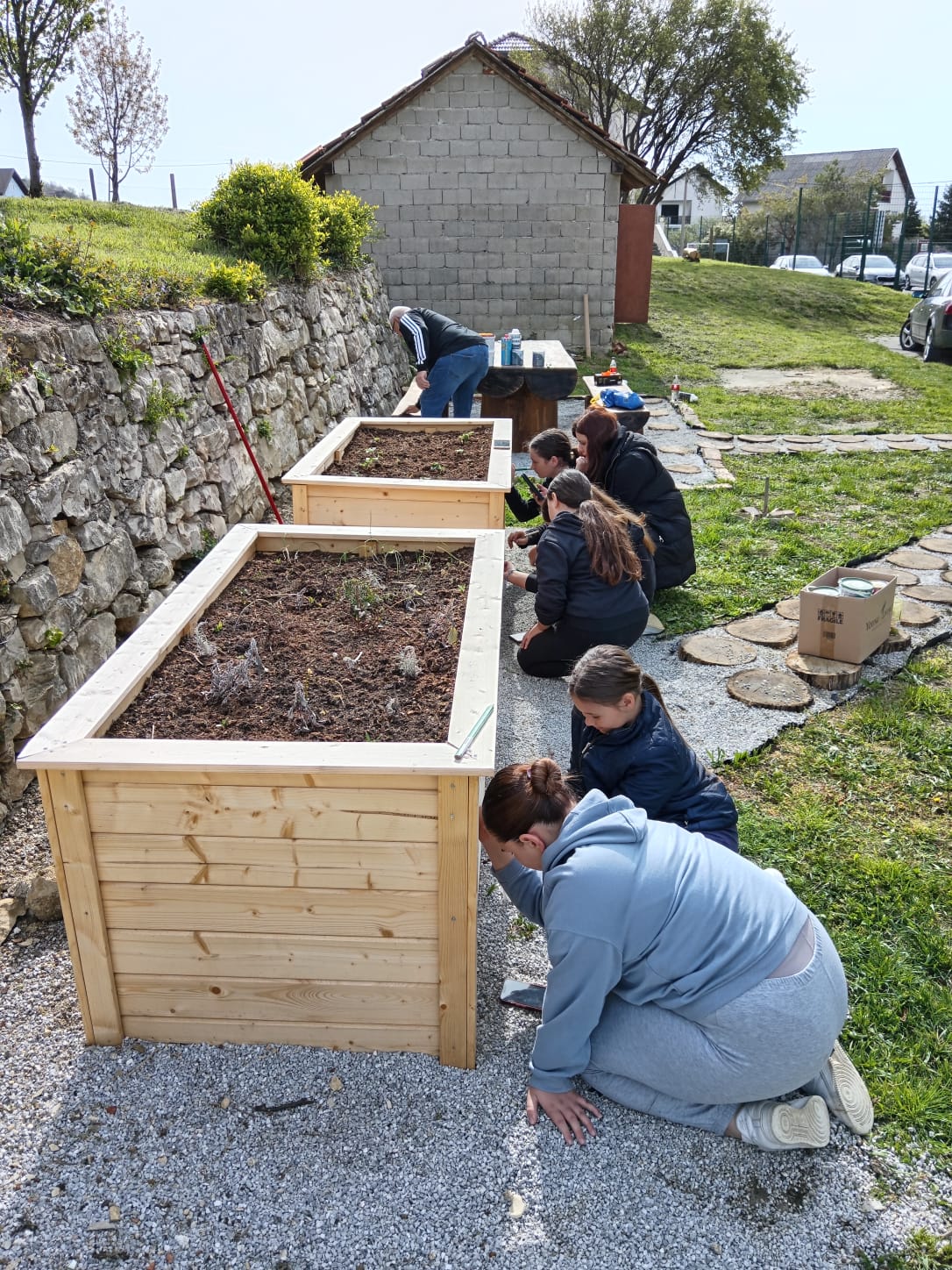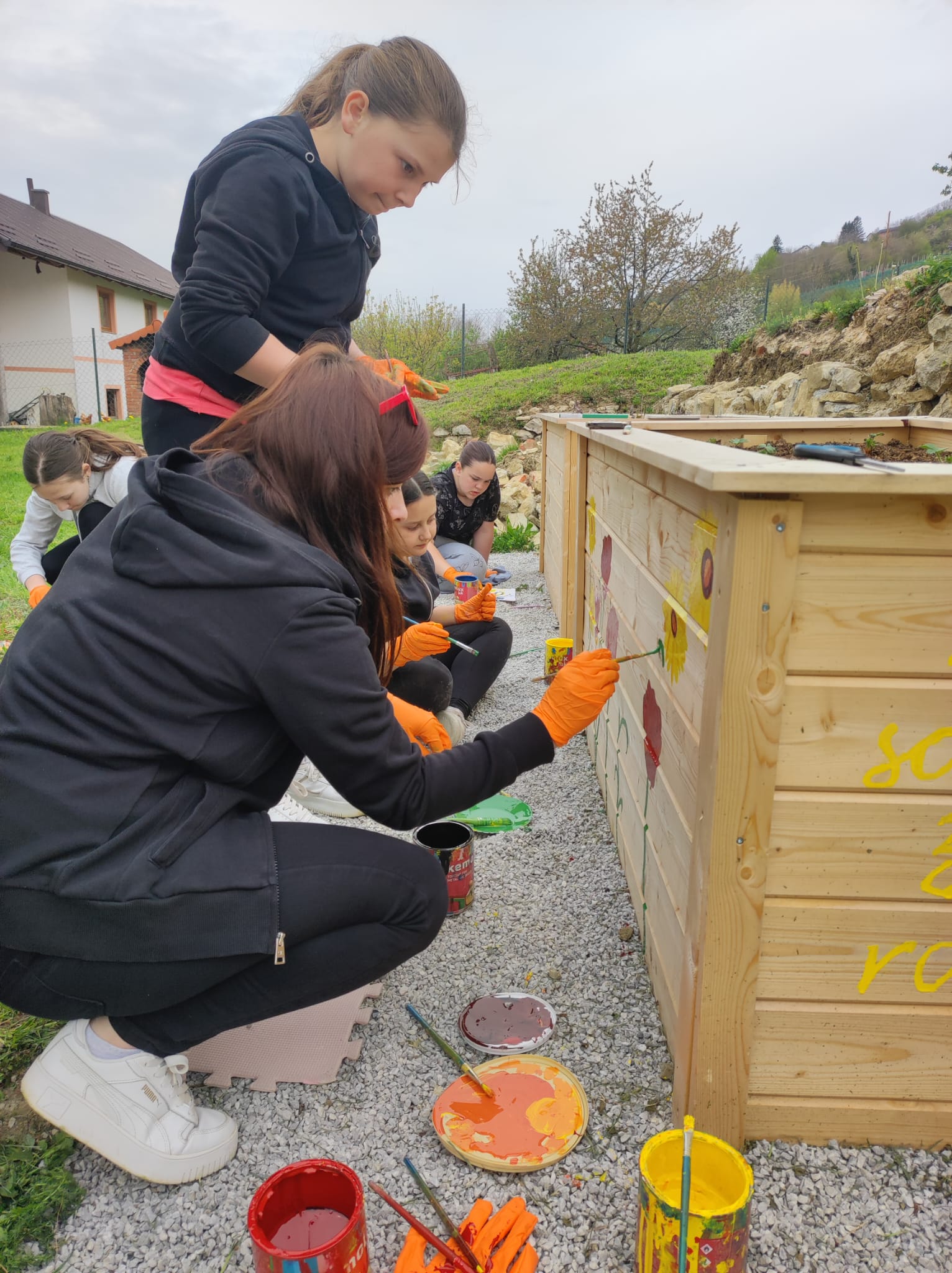 Posebna pažnja posvećena je uređenju i oslikavanju povišenih gredica. Sudionici su zajednički osmislili dizajn oslikavanja te vlastoručno oslikali gredice,
